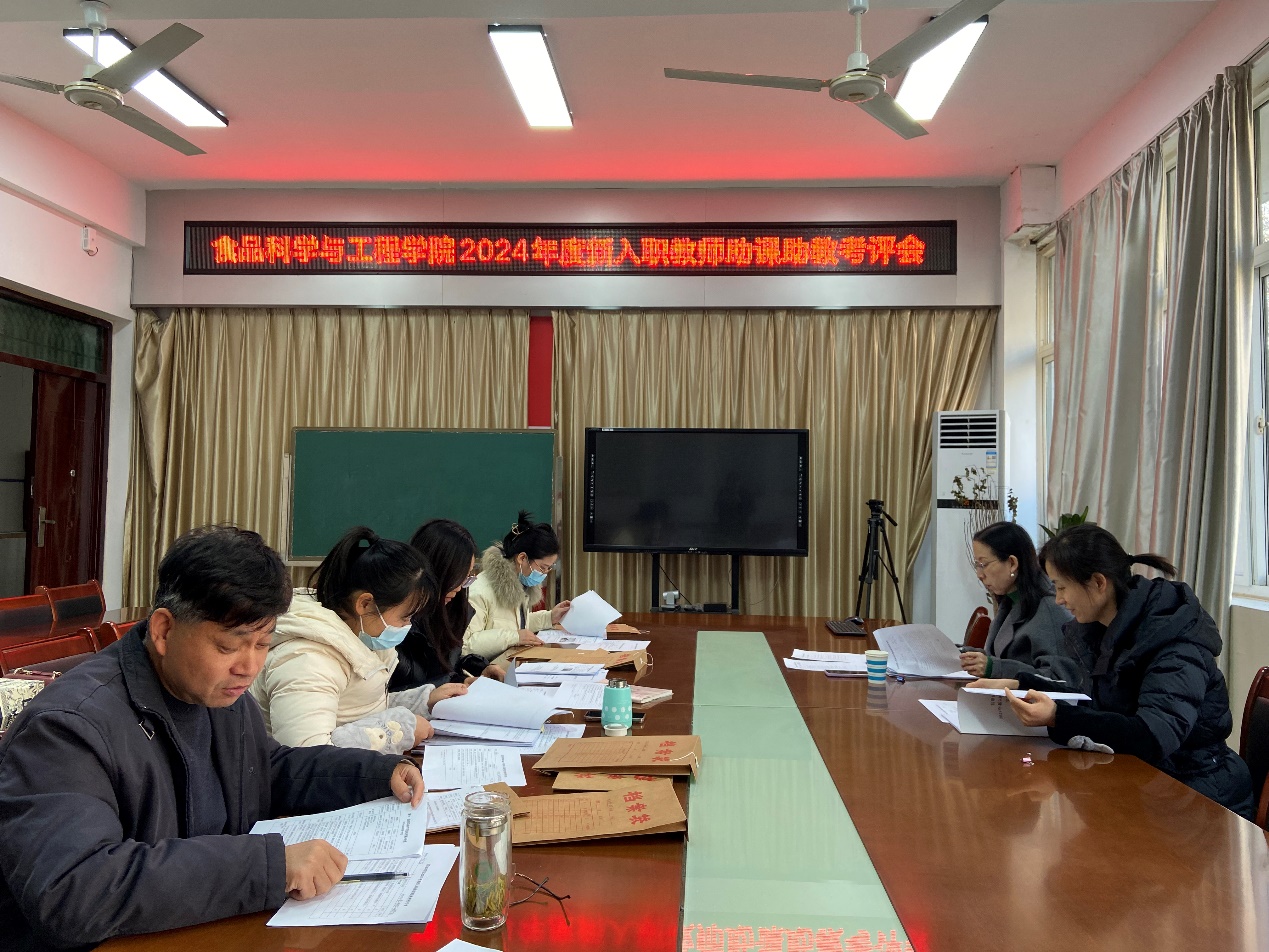根据《beat365在线平台官网2024年新入职教师助课助教实施方案》《beat365在线平台官网2024年秋季新入职教师岗前培训实施方案》要求,为帮助青年教师提升教学基本功,打牢教学根基,同时考核新入职教师助课助教工作的实施效果,食品科学与工程学院于12月30日在1B206会议室举办了2024年度新入职教师助课助教考核会。考核小组成员由学院学术分委员会教师组成,教师发展中心副主任邵颖应邀参会。会议由副院长朱静主持。