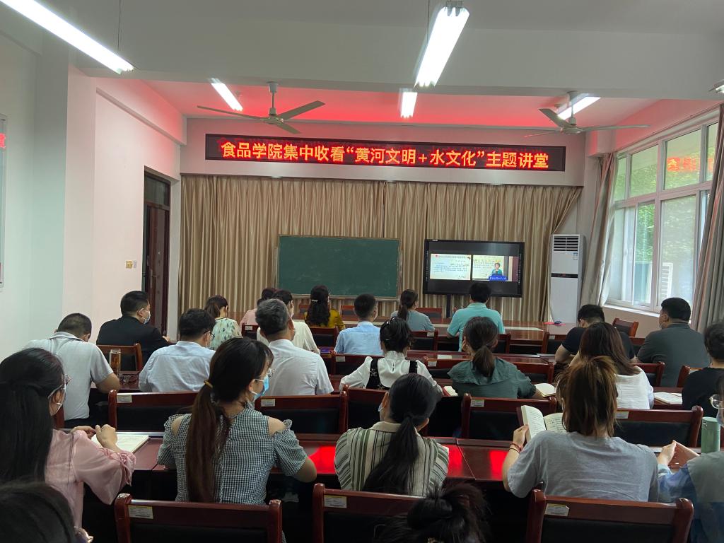 为了进一步落实河南省本科高校“黄河文明系列大讲堂”工作安排,进一步提升学院教师人文素养,8月24日上午9点,食品学院组织全体教师集中观看并学习了黄河文明系列大讲堂中“黄河文明+水文化”主题讲堂。