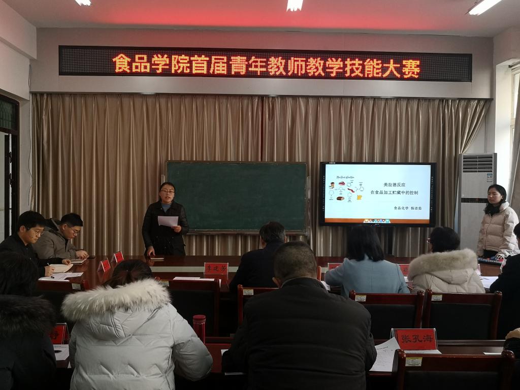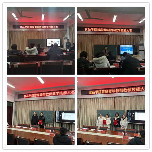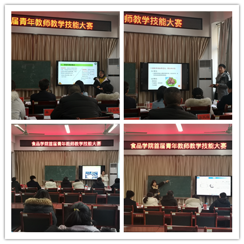 12月25日、30日,食品学院举办首届青年教师教学技能大赛,近三年入职的专任教师全部参加,共18人,分两场进行,本次大赛由李建芳副院长主持。