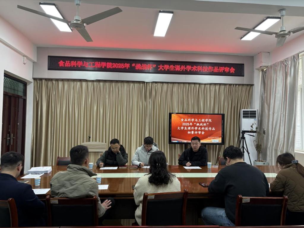 3月10日,食品科学与工程学院2025年“挑战杯”大学生课外学术科技作品评审会在科技楼1B206圆满落下帷幕。此次评审会旨在选拔优秀作品,进一步激发学生的创新思维与科研热情,为学生搭建展示学术成果的平台。学院党委副书记严兆洋参加本次评审会,参与评审的教师代表涵盖了学院多个专业领域,他们凭借深厚的学术造诣和丰富的教学科研经验,保证了评审工作的专业性与公正性。