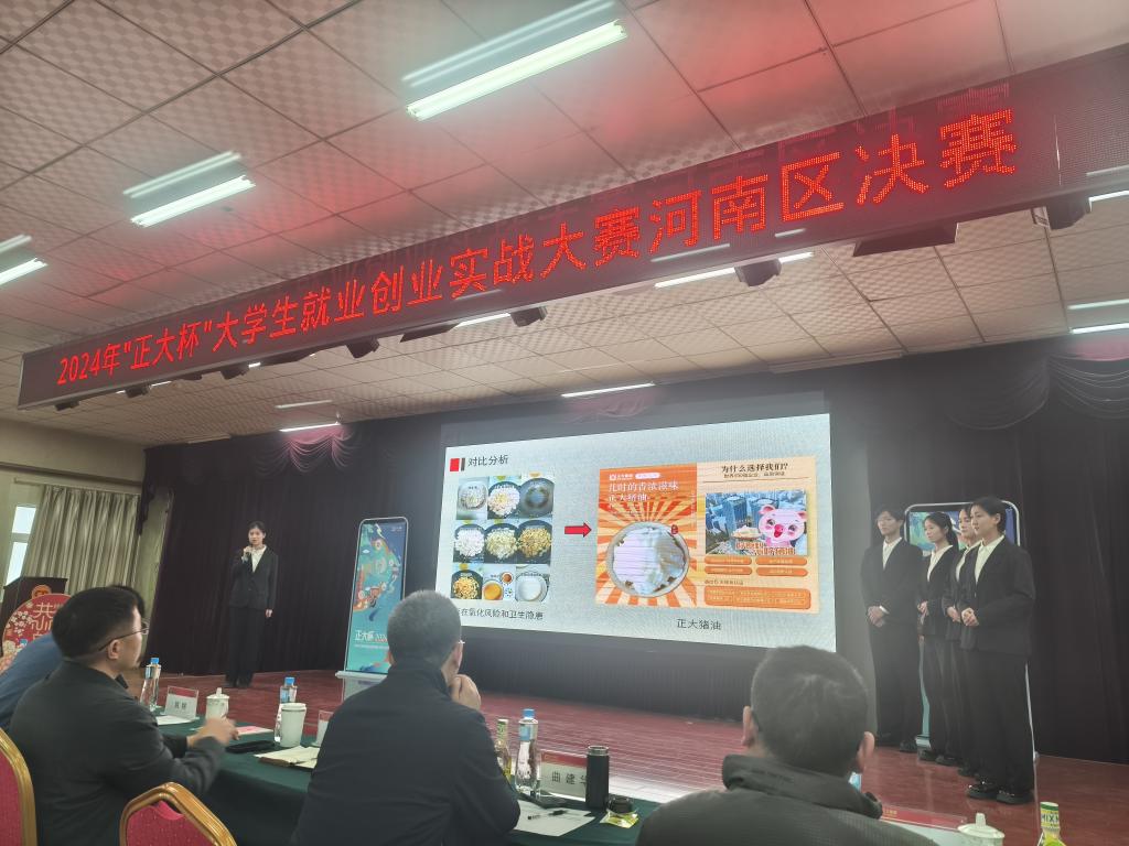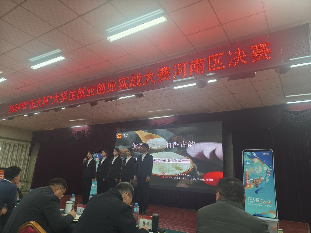 2025年1月3日,2024年“正大杯”大学生就业创业实战大赛河南区决赛在洛阳如期开展。食品科学与工程学院积极响应,精心组织,选拔出一支优秀的代表队参加比赛,经过激烈角逐,我院参赛作品《健康烹饪油香古韵》从全省数所高校队伍中脱颖而出,获河南省省级季军,充分展现了我院学子的创新实践能力。