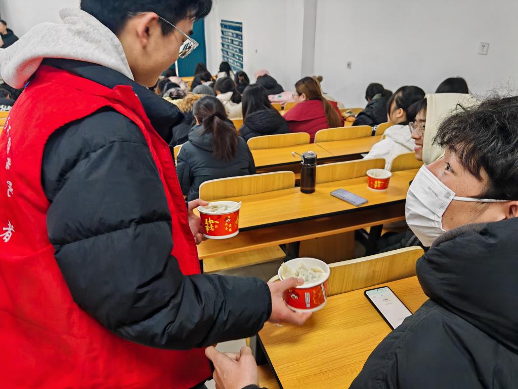 随后学院领导与教师代表为考研学子送去了亲手为他们包的冬至饺子,鼓励他们以最好的状态迎接到来的研究生考研。一碗碗饺子,传递着学院对学子们的牵挂与支持,让紧张备考的同学们感受到浓浓的关怀。