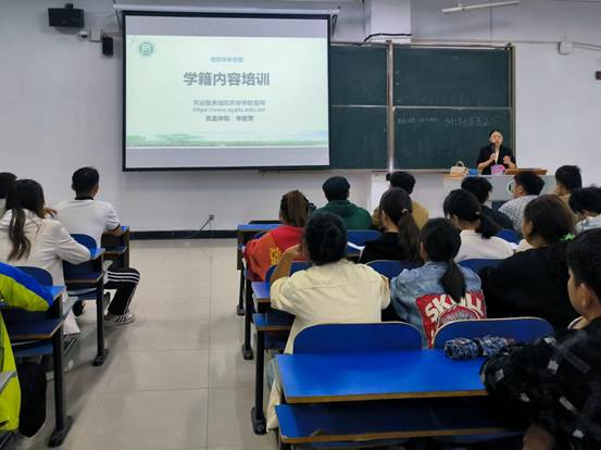 李老师从以下九个方面为全体2023级新生做学籍培训:新生注册、转专业、学籍信息更改、应征入伍学籍管理、休学与复学、学分和考证、补考和重修、教务管理系统和学信网。李老师对以上九个方面内容逐一进行了详细的讲解,强调了学生信息电子注册和学籍更改的具体要求以及在退休学、留降级等方面的一系列要求。她特别强调了这九个方面容易出现的问题,并针对这些问题做了专业的解答,避免学生因信息填写不正确或政策理解不透彻而造成不能顺利毕业的情况。