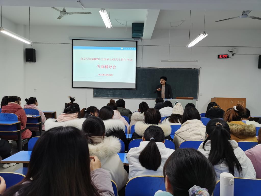 为鼓励学生以端正的姿态迎接研究生入学考试,坚定决心,树立信心,12月23日下午,食品学院在一教C301教室召开2022年研究生入学考试考前辅导会。学院党总支副书记刘涛,专职辅导员王子伟、黄卉卉和考研学生参加了本次辅导会。
