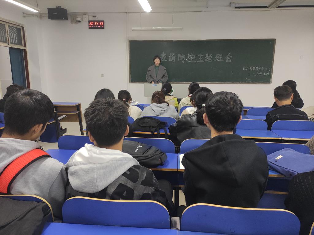 为了使学生疫情防控意识不松懈,根据疫情防控工作的需要,2021年11月10日-11月11日,食品学院全体辅导员老师陆续召开“疫情防控”主题班会,食品学院全体学生参加。