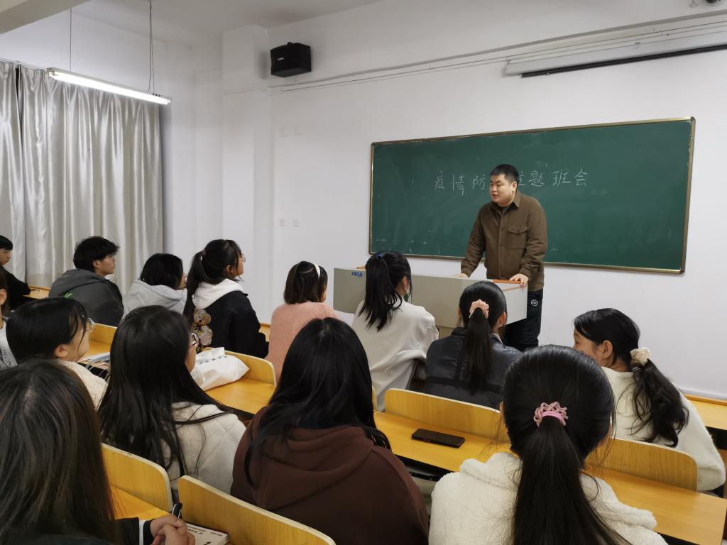 主题班会主要围绕疫情防控管理,班会上,各班辅导员老师强调疫情防控的相关事宜,吩咐学生做好自身的疫情防护,在校的日常生活要做好自我防护,如需要出校,按照学校发布的请假流程并做好离校登记,确保做到文明离校。