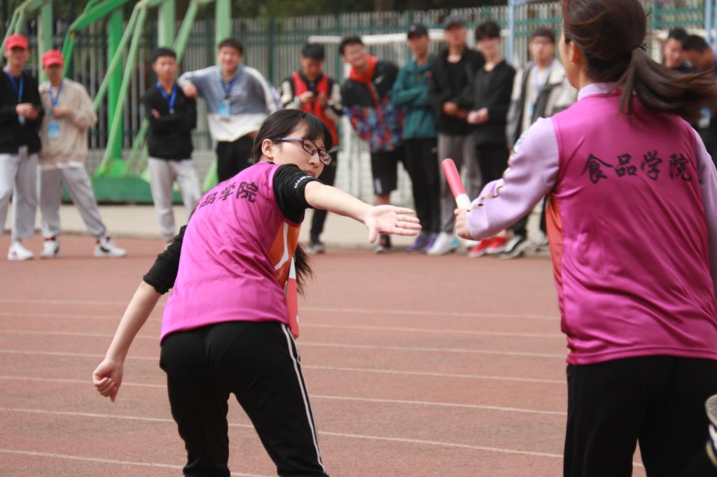 上下一气的团队精神。相互信任是工作顺利进行的前提条件,食品学院的学生干部、运动员以及全体教职工做到了这一点。学生干部相信老师们的决定、运动员相信学生干部的训练方法、老师们相信学生干部的执行能力,所有人上下一气,各司其职,工作有条不紊。很多高年级的优秀运动员发挥了非常好的带头作用,大四学生李峰多次参加校运会并打破尘封25年的男子100米和男子200米校运动会纪录,在男子4 X 100项目中更是出现大幅落后的情况下逆袭夺冠的精彩画面;吴春锐和张闪闪等高年级女生巾帼不让须眉,在多个个人和团体项目中奋勇当先斩获第一;他们在训练场上存在的意义已经不光是参加比赛,更是整个团队的精神旗帜。