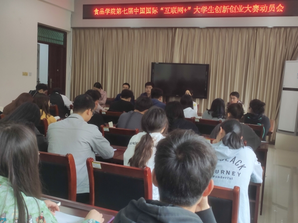 为做好第七届中国国际“互联网+”大学生创新创业大赛备赛工作,4月13日,食品学院在实验楼1B206召开了大赛动员会。会议由党总支副书记刘涛主持。