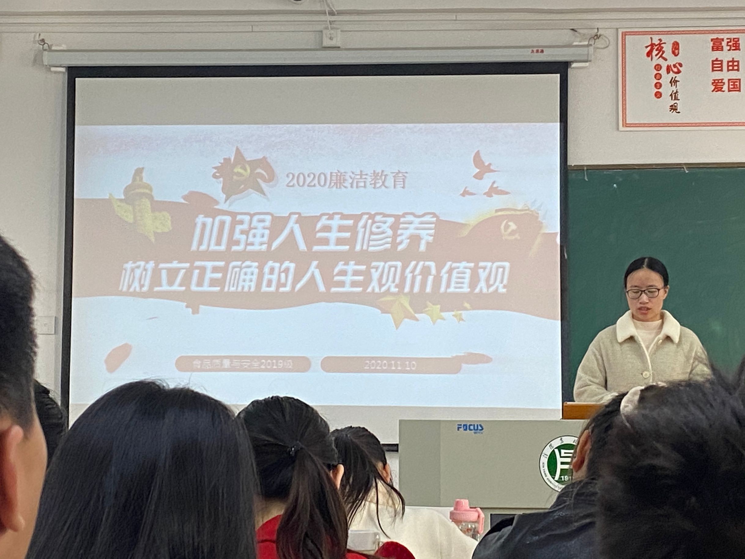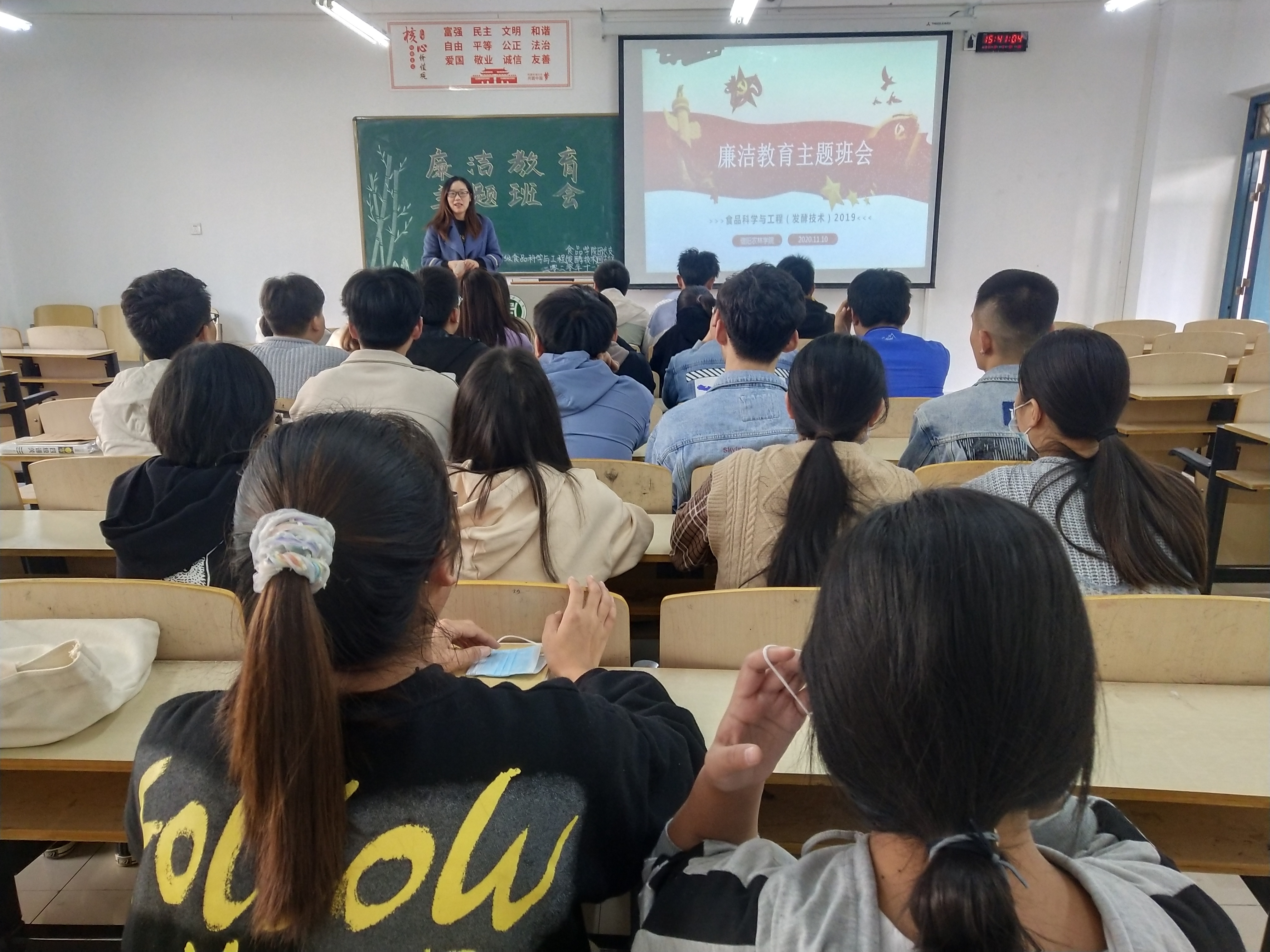 为了全面贯彻习近平总书记关于党风廉政建设的重要讲话精神,提升大学生廉洁自律意识,帮助大学生树立正确的世界观、人生观、价值观,食品学院全体辅导员老师陆续召开 “廉洁教育”主题班会,食品学院全体学生参加。