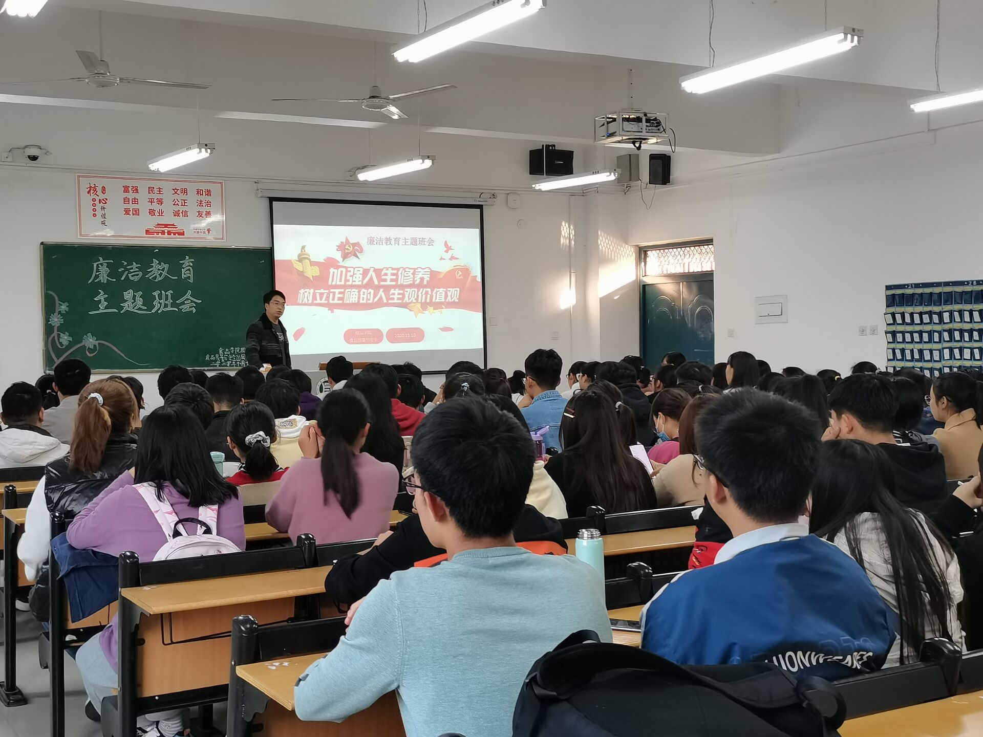 会上,辅导员老师们以“加强人生修养 树立正确的人生观价值观”为题,向同学们具体阐述了廉洁的含义及廉洁教育的重要性,并以相关实例为例,讲述其廉洁自律的故事,使同学们对廉洁教育有更好的认知,各班同学积极发表自身看法,受益颇多。