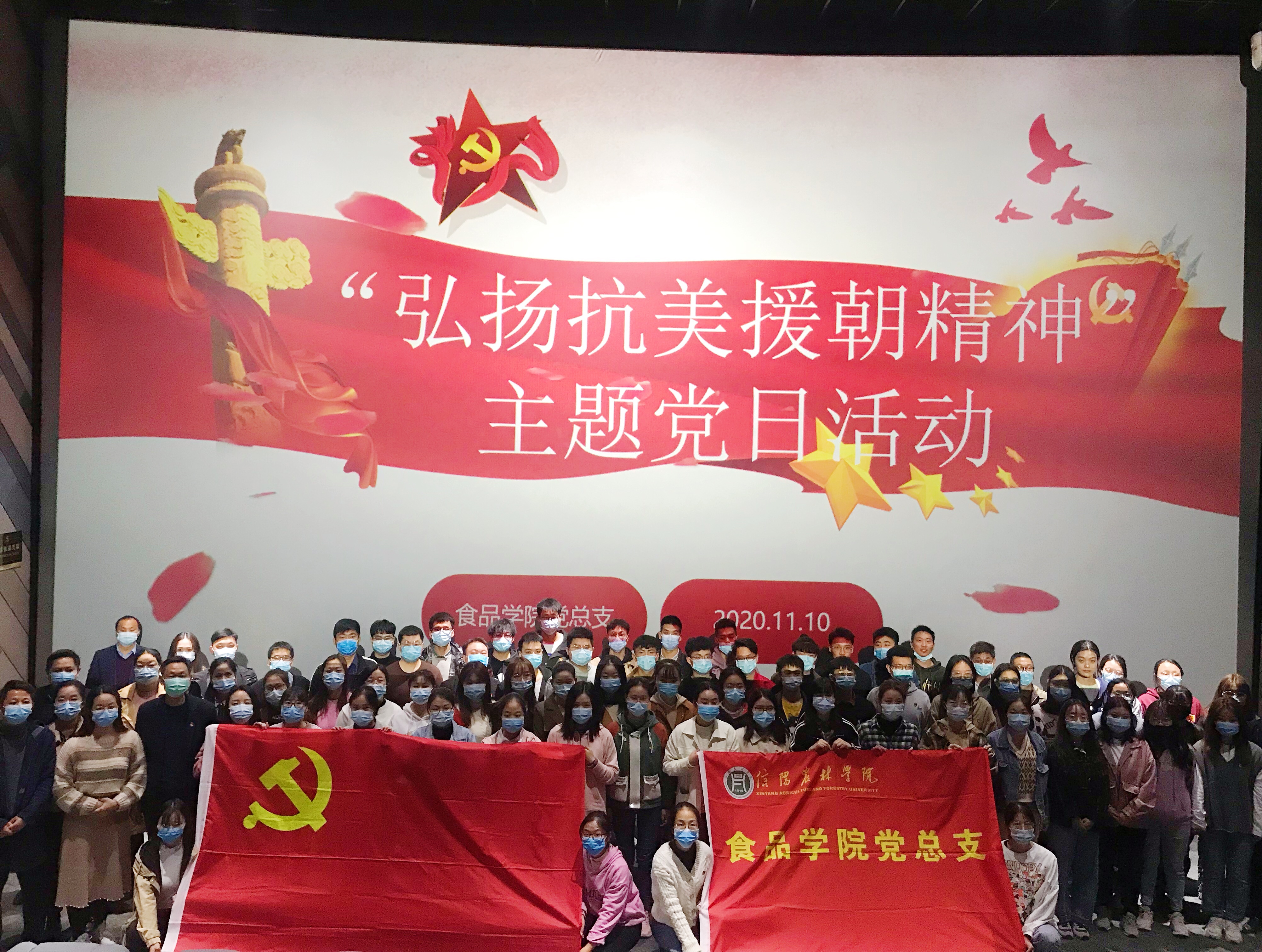 为了弘扬“抗美援朝精神”,铭记历史、致敬英雄,引导党员筑牢理想信念之魂,提高党员干部们的思想政治素质,在新时代继承和弘扬伟大抗美援朝精神,11月10日中午食品学院食品科学与工程教工党支部、烹调工艺与营养教工党支部、学生第一党支部和学生第二党支部开展主题党日活动,组织全体党员及入党积极分子观看抗美援朝题材电影《金刚川》。