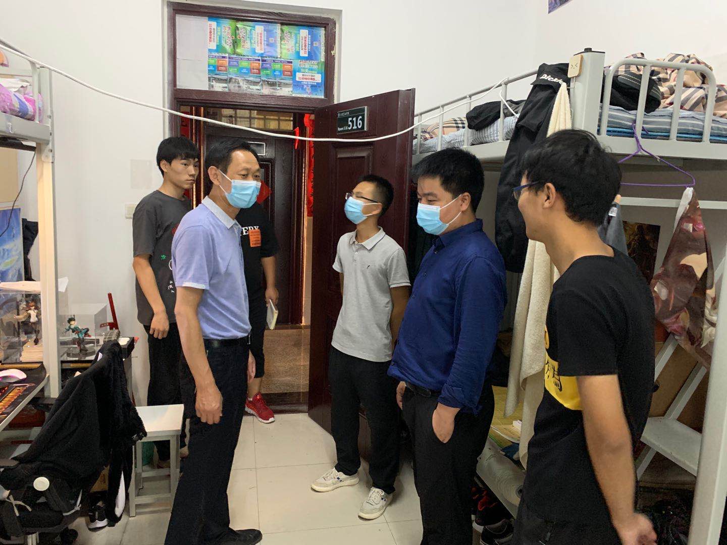 根据《beat365在线平台官网 2020 年秋季学期开学疫情防控工作方案》部署要求,2020年9月6日,食品学院2017、2018、2019 级全体学生错峰返校。为迎接学生返校,排查宿舍安全隐患,提高学生安全意识,营造文明温馨宿舍氛围,食品学院各班级辅导员在学院党总支书记夏新奎、副书记刘涛、副院长邵颖的带领下深入学生宿舍,与同学们进行了亲切交谈。