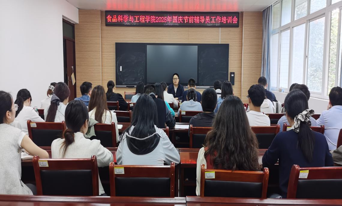 为全面提升辅导员队伍的业务能力与应急处理水平,确保国庆假期期间学生工作平稳有序,9月30日上午,食品科学与工程学院在1B304组织召开国庆节前辅导员工作专题培训会。学院党委书记李海祺出席会议并作指导讲话,学院全体专兼职辅导员参加了本次培训。