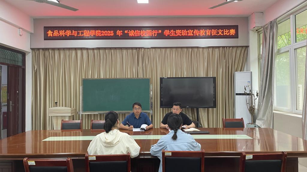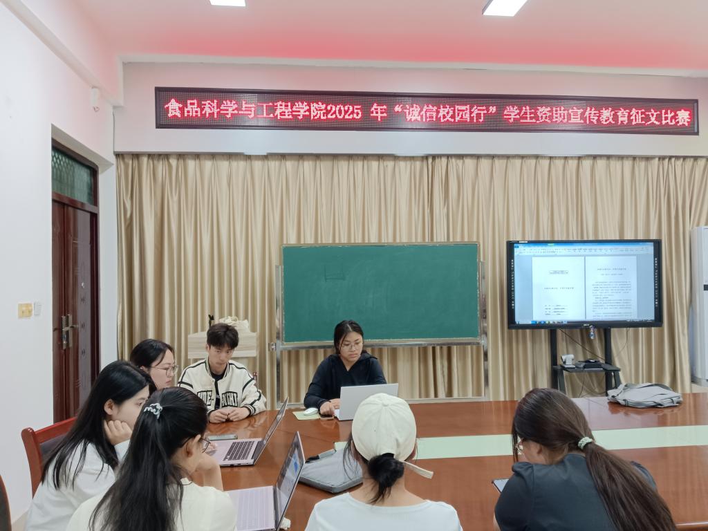 为深入贯彻落实国家学生资助政策,加强诚信教育,提升学生资助工作成效,4月3日至4月18,食品科学与工程学院开展了“诚信校园行”学生资助宣传教育征文比赛,并对初赛作品进行评审,参与评审的有学院副书记严兆洋、资助专员杨婷、专职辅导员柳诚刚、专职辅导员黄卉卉、资助服务部负责人及部内成员代表。