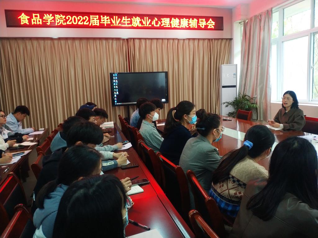 为切实增强毕业生的就业心理调适能力,帮助我院2022届毕业生更好就业,3月30日下午,食品学院在1B206会议室召开2022届毕业生就业心理健康辅导会。