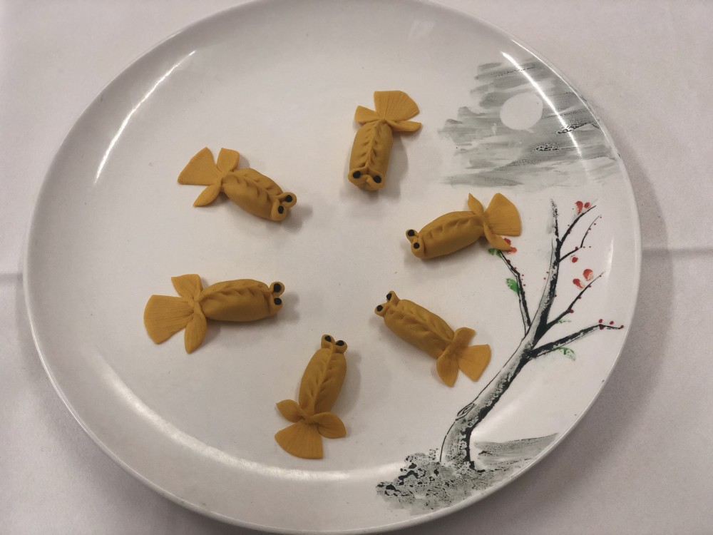 在决赛中,我院推选作品,均取得优异的成绩:李丁洁等学生的参赛作品《“慧眼识珠”焖罐肉饺子》(指导教师:邵颖、王宝刚)获一等奖;侯信哲等学生的参赛作品《豫风楚韵,梅迎冬至》(指导教师:周枫、李飞)获一等奖;王罗玲等学生的参赛作品《“莲”年有余》(指导教师:邵颖、王子伟)获二等奖。
