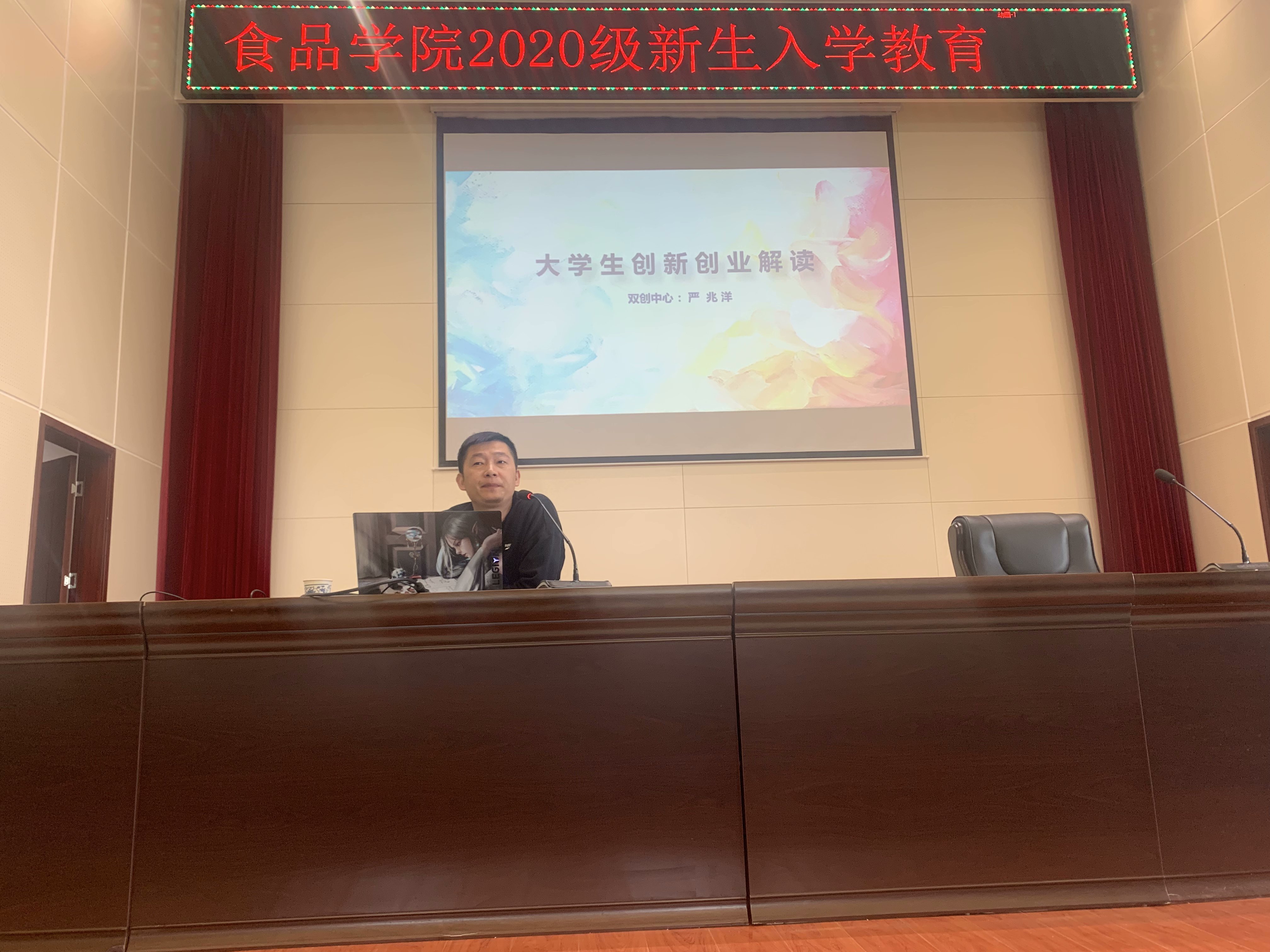 通过严兆洋老师幽默风趣的讲座,2020级新生们对大学生创新与创业有了更深刻的了解,激发了同学们创新创业的决心,相信他们会更加努力地学习专业知识,逐步实现自己的人生目标。(食品学院 柳诚刚)