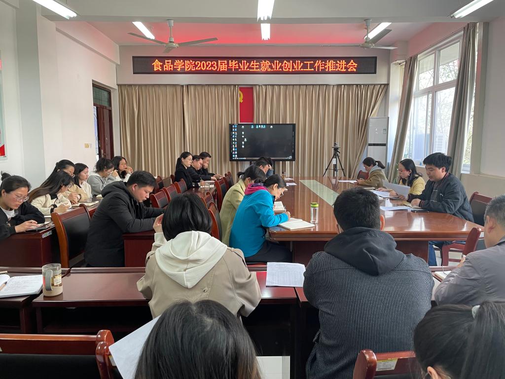 为抢抓春季学期促就业关键期,全力做好毕业生就业工作,3月14日,食品学院在实验楼1B206会议室召开2023届毕业生就业创业工作推进会。院领导班子成员、全体教职工参加会议。