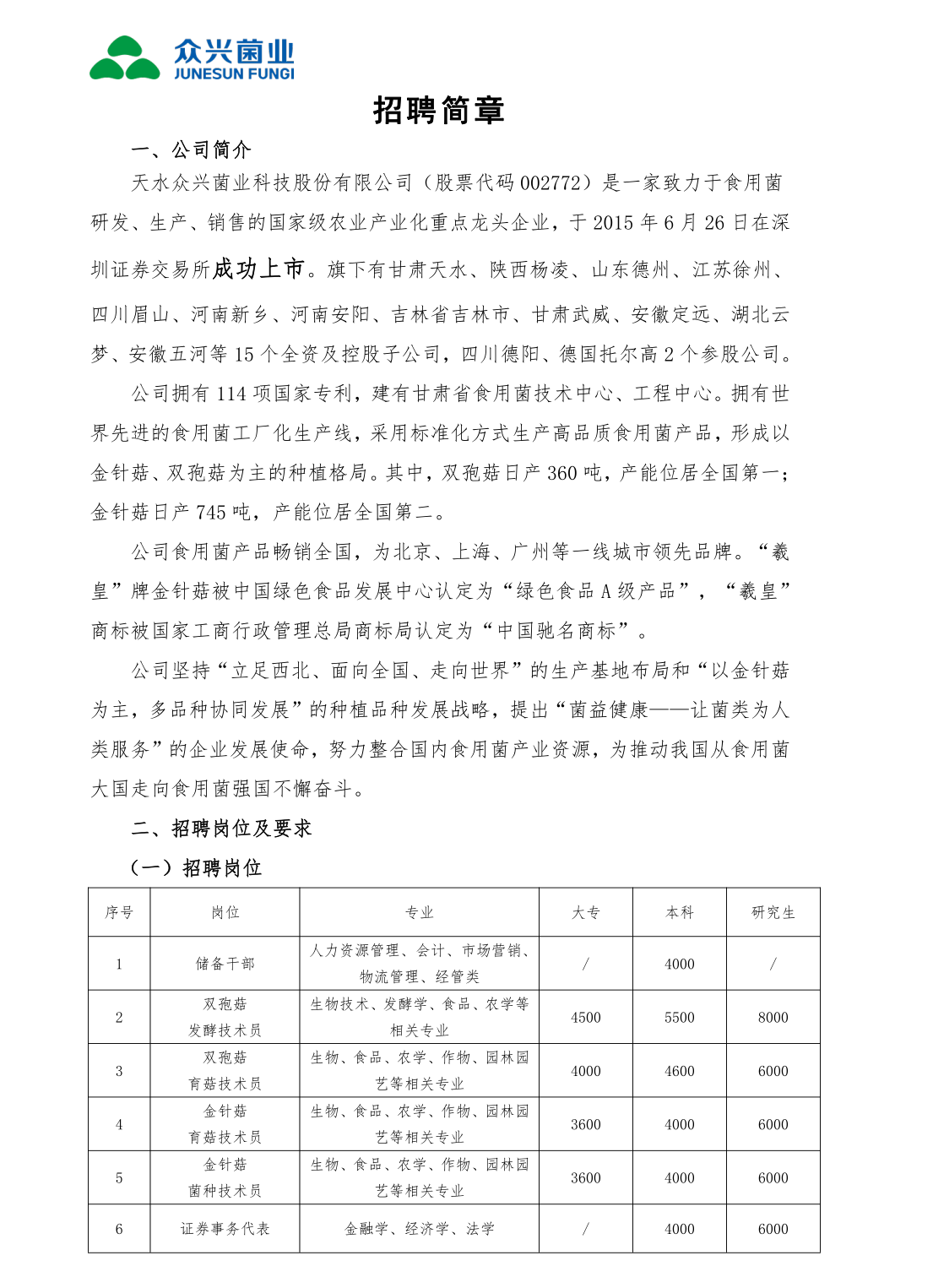 【招聘信息】天水众兴菌业科技股份有限公司2022届校园招聘线上专场宣讲会