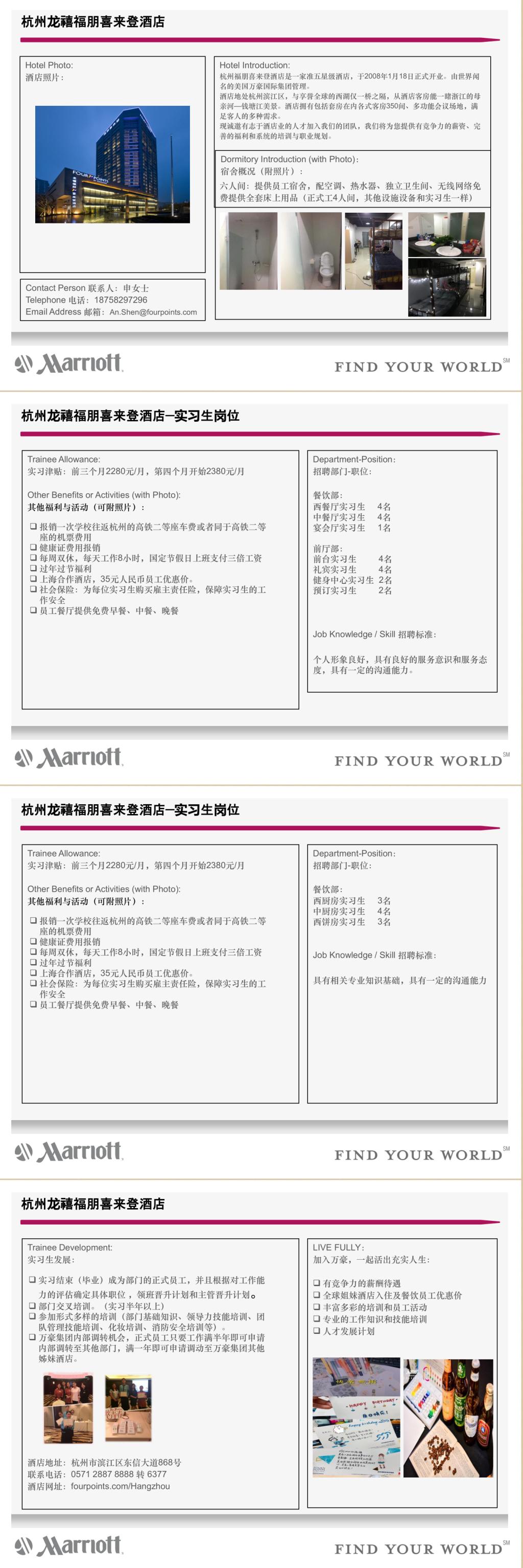 【招聘信息】杭州龙禧福朋喜来登酒店招聘