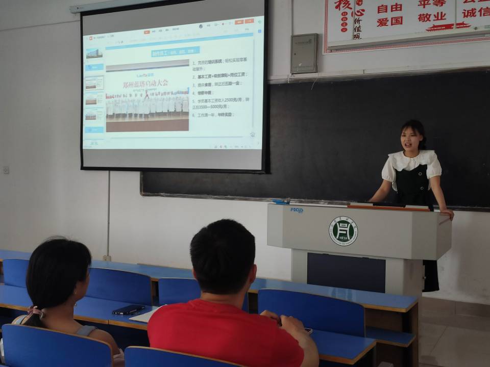 6月6日中午,郑州市蓝塔食品有限公司于一教C401教室开展专场宣讲会。该公司人力资源负责人向同学们介绍了蓝塔的企业概况,并现场回答了同学们关心的岗位晋升制度、工作时间等问题,期待同学们踊跃投递简历,进入公司学习。