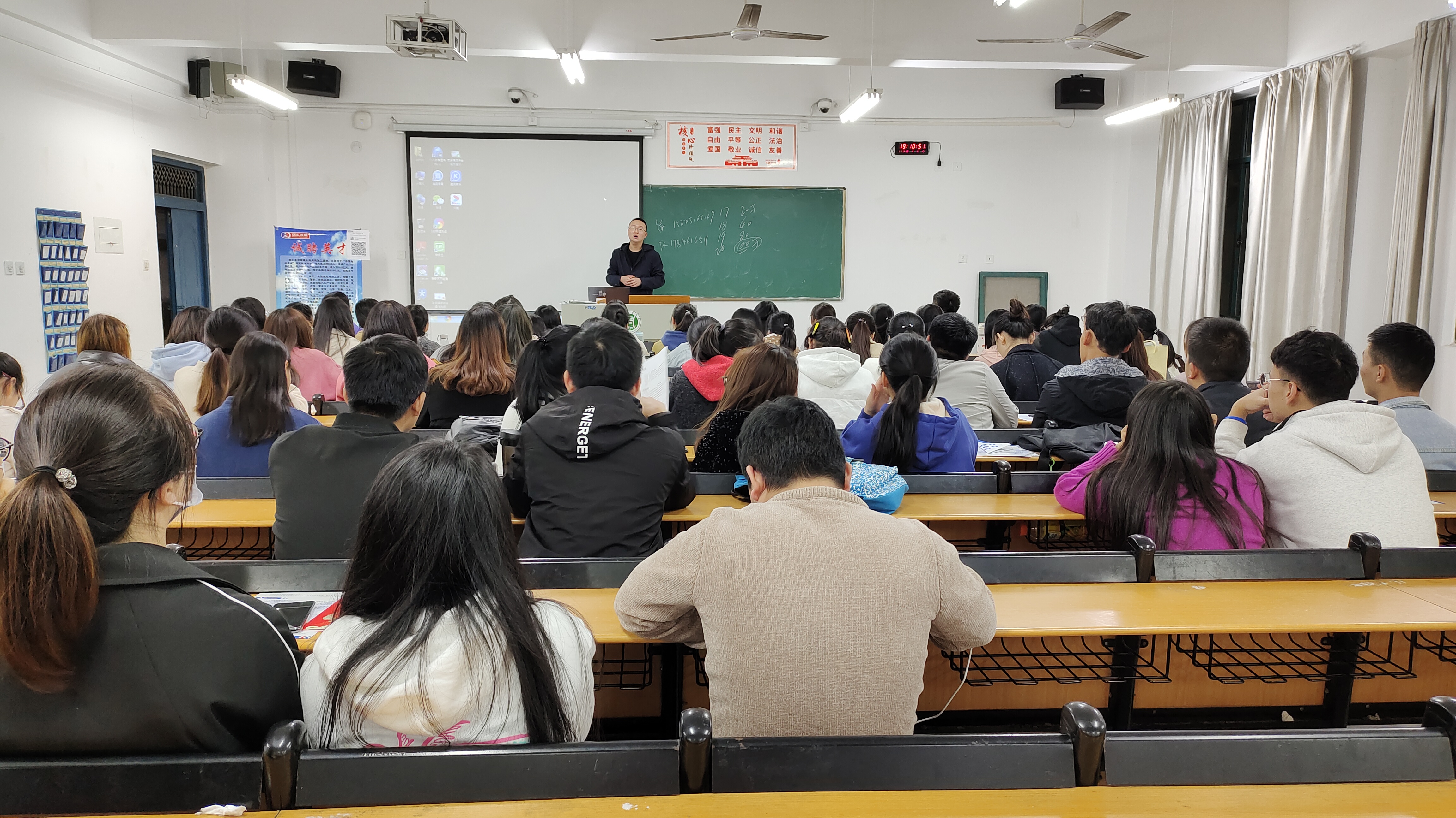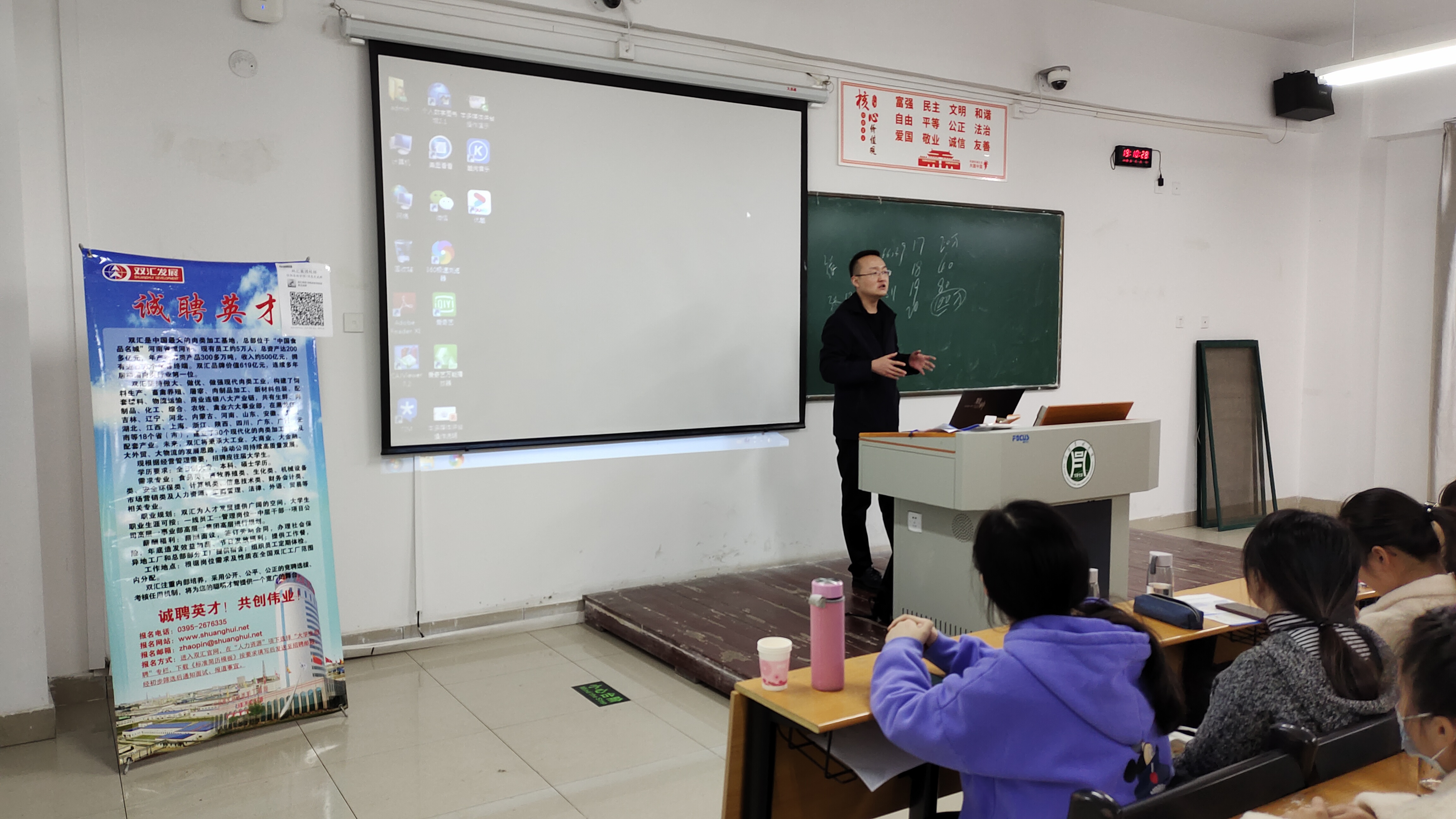 11月20日下午上海双汇大昌有限公司于二教115教室开展招聘宣讲会。本次宣讲会负责人介绍了公司相关情况,就企业的管理和竞争力进行了讲解,期待同学们踊跃投递简历,进入公司学习,同时在答疑环节针对同学们提出的岗位提升空间等问题进行详细介绍,氛围热烈。