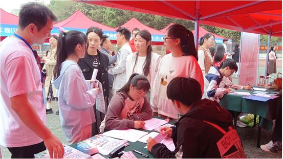 招聘会现场气氛热烈、人头攒动,我院2024届毕业生手持精心准备的简历,积极与现场招聘人员交流,认真了解岗位条件、招聘需求等相关信息。部分低年级学生也来到招聘会现场观摩,提前了解行业需求。同时,我院在现场设立有志愿者服务台,协助用人单位制作宣传海报、安排宣讲教室等,为企业和毕业生提供优质便捷的服务。