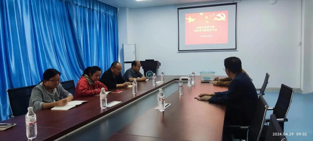 4月29日上午,实验农场党支部全体党员在科技楼1A二楼会议室开展了党纪学习教育专题学习大会。