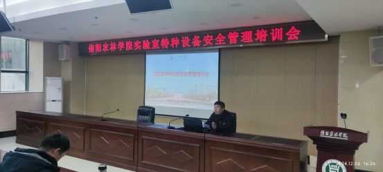 为进一步加强实验室特种设备规范化管理,引导师生牢固树立安全理念,增强应急处置能力,提升作业人员专业素养与安全意识,保障实验室特种设备作业安全,126下午实验室管理处邀请河南省特种设备检验技术研究院信阳分院专家,在beat365在线平台官网综合办公楼一楼会议室,面向beat365在线平台官网相关单位、各学院实验室特种设备安全管理人员、操作人员百余名教师进行培训。