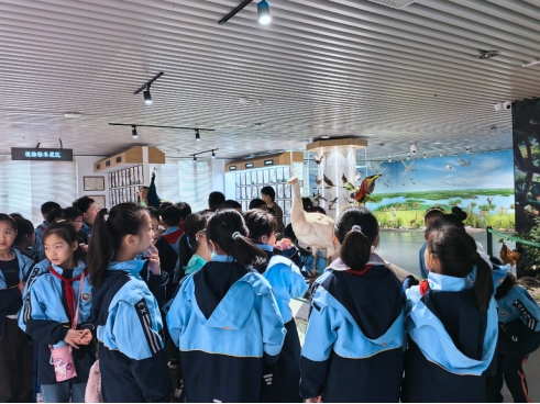 在滕云老师的生动讲解下,孩子们有序参观了标本馆的各个展区。从形态各异的植物标本,到栩栩如生的动物标本,再到种类繁多的昆虫标本,每一件展品都让孩子们充满好奇。滕云老师结合标本实物,用通俗易懂的语言,详细讲解了各类生物的生长习性、生态特征以及保护现状,将专业的生物知识转化为孩子们听得懂、感兴趣的内容。孩子们认真聆听、仔细观察,不时提出自己的疑问,在一问一答中,不仅认识了多种大别山地区的特色物种,更深刻理解了生物多样性保护的重要意义。