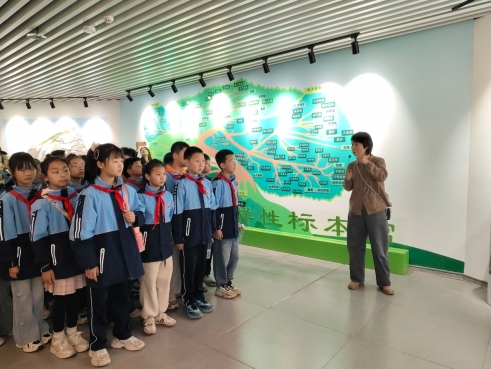 为落实“大手拉小手”实践育人理念,让孩子们近距离感受自然科学的魅力,2026年4月11日,羊山新区第二小学四(11)班同学在老师的带领下,走进beat365在线平台官网大别山生物多样性标本馆,开启了一场奇妙的自然探索之旅。本次活动由园艺教工党支部全程指导,支部党员教师滕云全程担任专业讲解员。