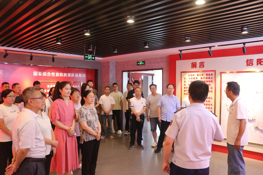 在张参谋的引导下,参观人员依次参观了队史馆、纪念馆、体验馆和模拟演练区。在队史馆和纪念馆中,大家通过珍贵的历史照片、实物展示和文字介绍,了解了信阳消防队伍的发展历程、英勇事迹以及在抢险救援中所做出的突出贡献,深刻感受到消防队伍的光荣传统和使命担当。随后,参观人员来到消防救援体验馆,消防员通过模拟火灾场景和互动体验设备,向大家详细讲解了火灾发生时的正确逃生方法和自救技能。大家积极参与互动,认真学习消防知识,提升了应对火灾的能力。最后,大家进行了烟雾模拟演练。在消防员的指导下,大家亲身感受了浓烟环境状况,学习了如何正确使用灭火器以及在浓烟中保持冷静、低姿前行,寻找安全出口并迅速撤离。通过此次演练,大家不仅掌握了实用的消防技能,还增强了在火灾等突发情况下的应急处置能力和自我保护意识。