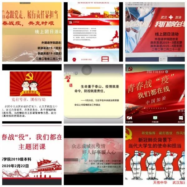 各班级团支部围绕学习贯彻落实习近平总书记对疫情防控工作作出的系列重要指示批示精神、学习疫情防控工作中涌现的先进典型、学习疫情防控相关知识等主要内容,采用视频会议、文字交流、课件学习、知识问答、故事分享等灵活多样的形式提高团课学习效果。