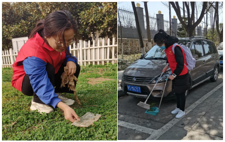 同学们化身志愿者,走进校园草坪,深入气象站、食堂等重点区域进行集中清理。他们分工合作、干劲十足,“红马甲”在阳春三月里成了信农校园里一抹靓丽的风景线。
