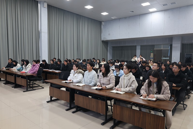 开班仪式后,王万玲以《深学细悟党的二十届四中全会精神 做坚定的马克思主义信仰者》为题作开班第一讲。她从深刻认识和把握党的二十届四中全会的重大意义与历史方位、聚焦“发展蓝图”,准确理解“十五五”战略部署与青年机遇、笃行实干抓落实,做坚定的马克思主义信仰者三个方面展开讲授,为学员深化理论认知,筑牢思想根基开启了系统学习的序幕。(撰稿/校团委 魏竞超 孙羽佳 摄影/吴昊)