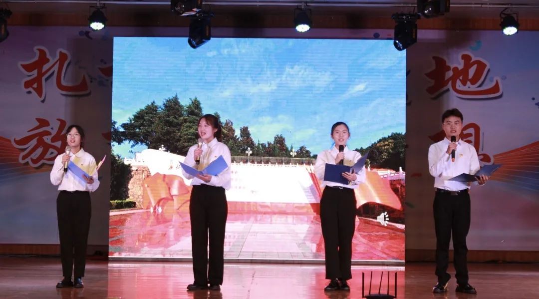 为贯彻落实习近平总书记在党史学习教育动员大会上的重要讲话精神,激励广大青年学生讲好大别山红色故事,创新党史学习教育方式,校团委于4月25日晚在大学生活动中心举办“学党史,知国情,传承红色基因、讲大别山红色故事”大赛决赛。副校长王万玲及党委办公室、党委宣传部、马克思主义学院、校团委、学生处等部门负责老师和全校师生代表近800人参与了此次活动。