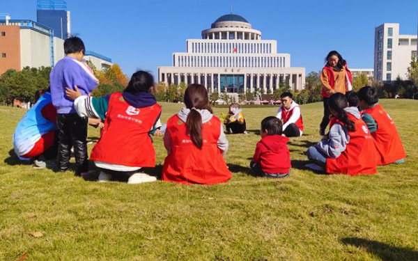 志愿者先陪伴福利院儿童做游戏,分享红色故事,引导小朋友们讲述自己心目中的民族英雄。随后,志愿者带领小朋友们从楚韵湖到花果山,向他们介绍各种植物,展示农林学院校园特色,使其了解植物的培育及种植过程,在游玩的同时学习知识。
