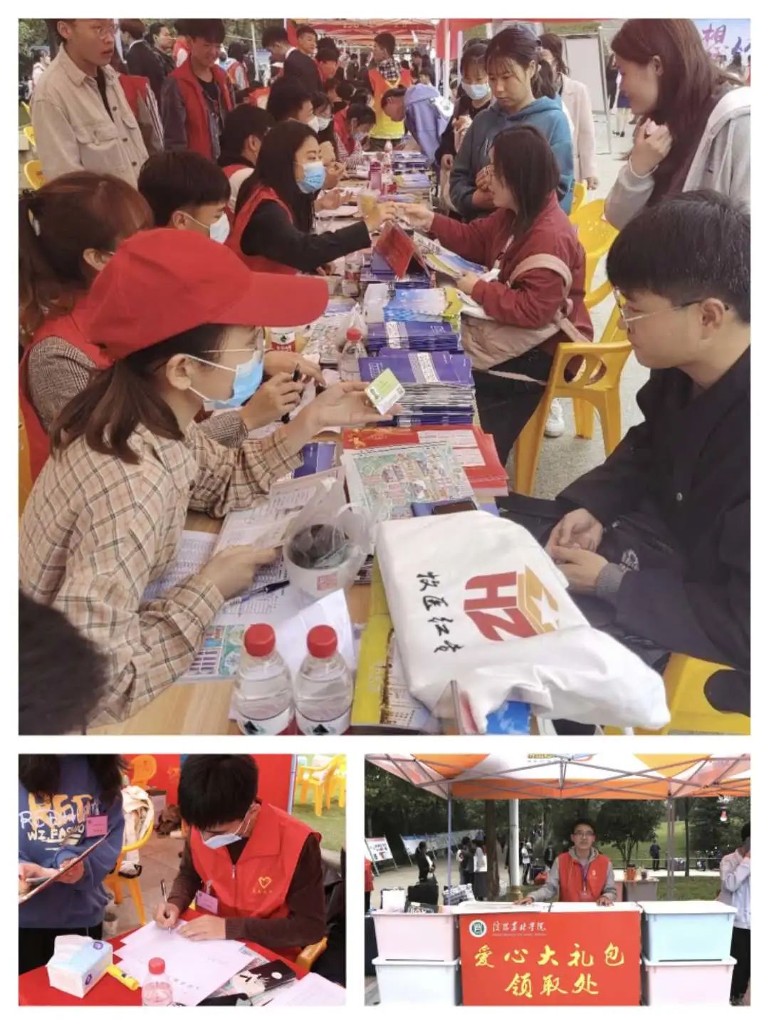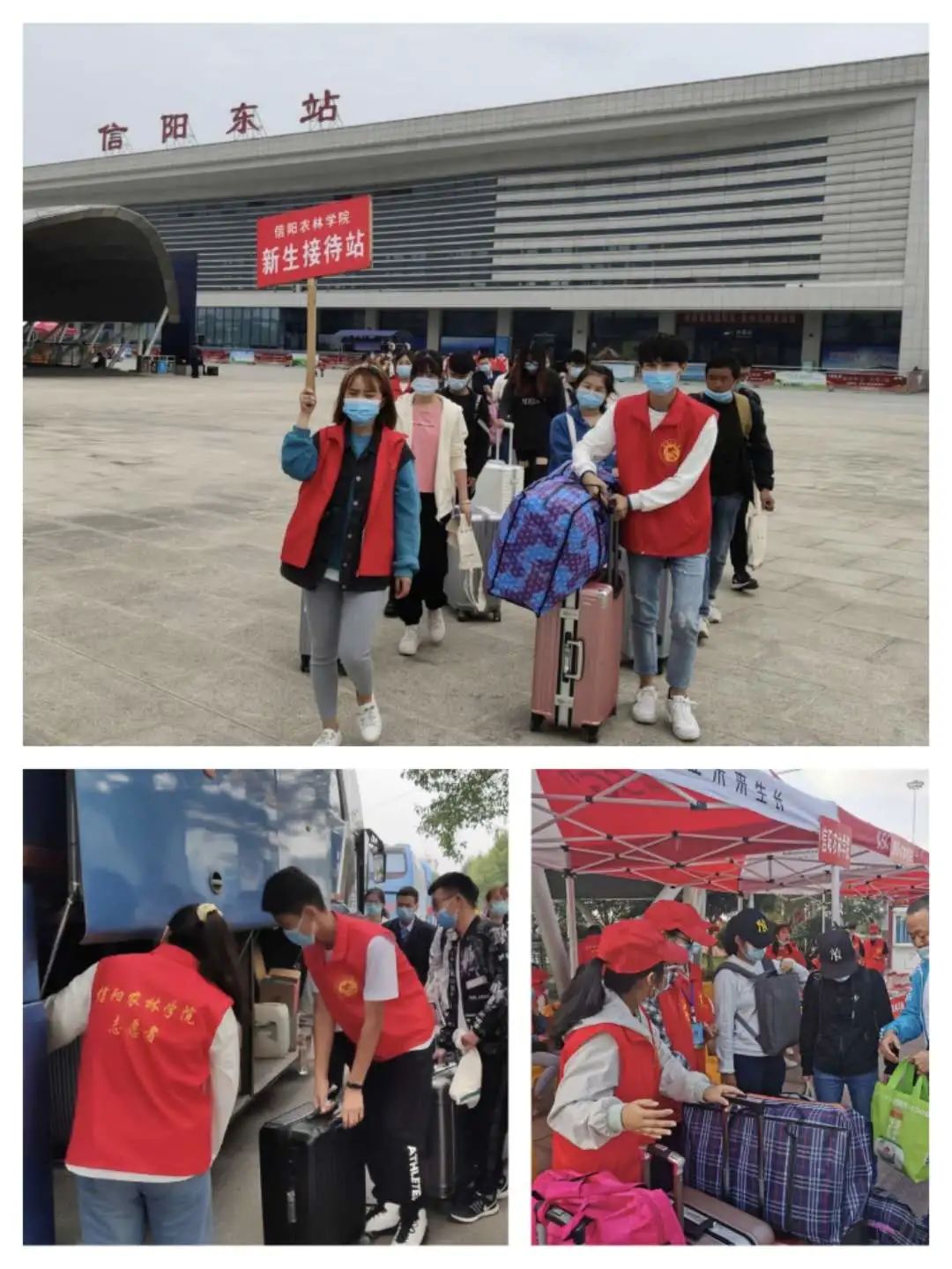 在校团委的统筹安排下,志愿者们身着鲜艳的红马甲,竭尽全力为新生们提供周到的服务。