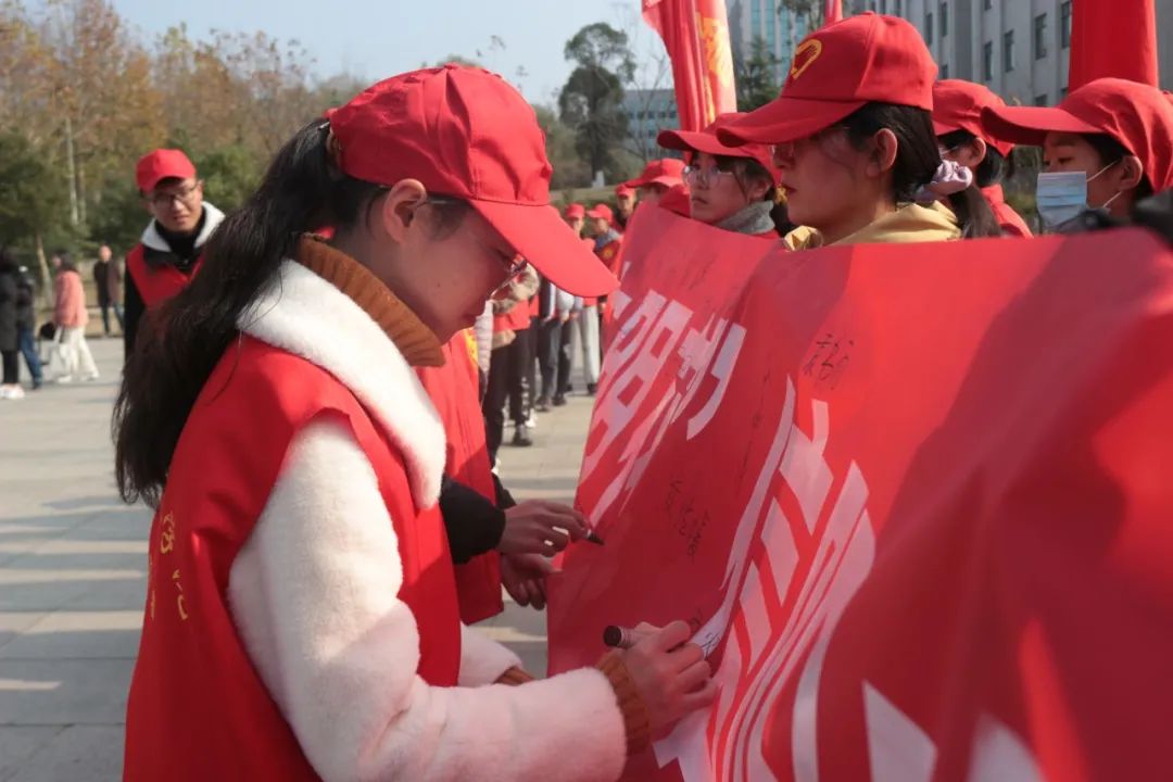 为深入贯彻落实习近平新时代中国特色社会主义思想和党的十九大精神,践行社会主义核心价值观,大力弘扬“奉献、友爱、互助、进步”的志愿精神,推动beat365在线平台官网志愿服务活动常态化、制度化,牢固树立“学习雷锋、奉献他人、提升自己”的志愿服务理念。校团委决定在第35个国际志愿者日来临之际,广泛开展“信农志愿红,绽放文明花”志愿服务活动并于12月4日在汝宁广场举行此次活动的启动仪式,校团委全体人员及各院代表近300余名志愿者参加了本次活动。