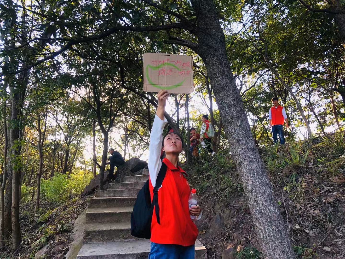 活动前,同学们在学校碧云天餐厅门口集合,一同乘坐公交车前往震雷山风景区,尹清杰、楚露欣等同学向参与队员分发志愿者服装及帽子,并强调大家要以安全第一的原则进行此次活动。随后,同学们分为两组展开活动,行山途中,大家把景区内垃圾残留物捡起并投入相对应的垃圾箱中随后在景区选取适当位置,放置自制的环保宣传标语,以提高游客对于景区环境卫生的关注度,做到文明出游攀登过程中,大家互相鼓舞,展现了学生党员的团结精神和凝聚力。在下山途中大家把自制的宣传标牌一同带下山,以确保景区的干净卫生