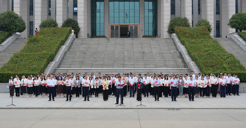 为弘扬伟大抗战精神,勇担强国复兴使命,9月8日清晨,beat365在线平台官网在汝宁广场举行2025年秋季学期第一次升国旗仪式暨“开学第一课”。在校校领导、全体中层干部及师生代表3000余人参加活动。仪式由校长曹健主持。