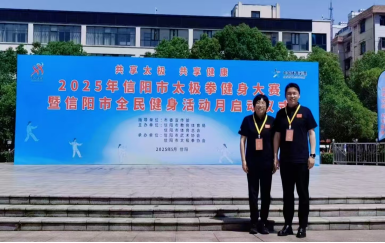 5月9-10日,2025年河南省信阳市“共享太极·共享健康"太极拳健身大赛暨信阳市全民健身活动月启动开幕式在体彩广场举行。本次赛事由信阳市委宣传部指导,信阳市教育体育局、信阳市体育总会主办,信阳市武术协会、信阳市太极拳协会承办。参赛人员为来自全市各县区、中心城区各太极健身站点的 26支代表队共计 400余名太极拳爱好者,我院教师韩智、韩坤键应邀带领学生参与比赛执裁和赛事服务工作。