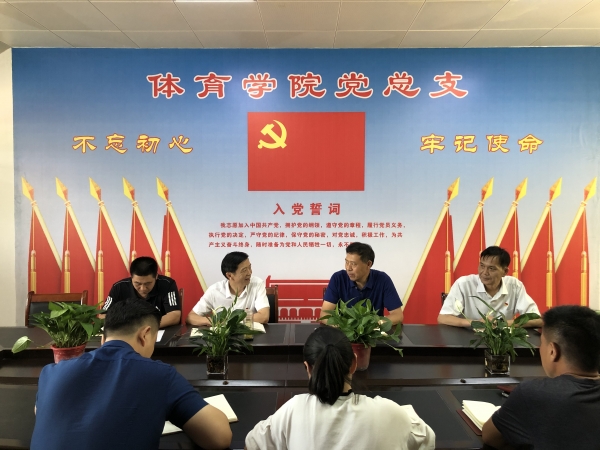 6月30日下午,体育学院党总支全体党员在会议室学习习近平在庆祝中国共产党成立95周年大会上的重要讲话,会议由李耕书记主持并带领学习,他指出,习近平总书记重要讲话,高屋建瓴、思想深邃,是我们党面向未来的新的政治宣言和行动纲领,深刻阐述了面向未来,面对挑战,坚持不忘初心、继续前进的重大要求,对全党在新的历史起点上统筹推进“五位一体”总体布局、协调推进“四个全面”战略布局,具有重要指导意义。要通过对重要讲话的深入学习讨论,进一步增强政治意识、大局意识、核心意识、看齐意识,进一步坚定中国特色社会主义道路自信、理论自信、制度自信、文化自信。要严格落实全面从严治党主体责任,增强党内政治生活的政治性、时代性、原则性、战斗性,全面加强党的思想、组织、作风、反腐倡廉和制度建设,全面净化党内政治生态,保持党的先进性、纯洁性,增强党的创造力、凝聚力、战斗力,以党的建设新成效推进学院事业发展取得新进步。