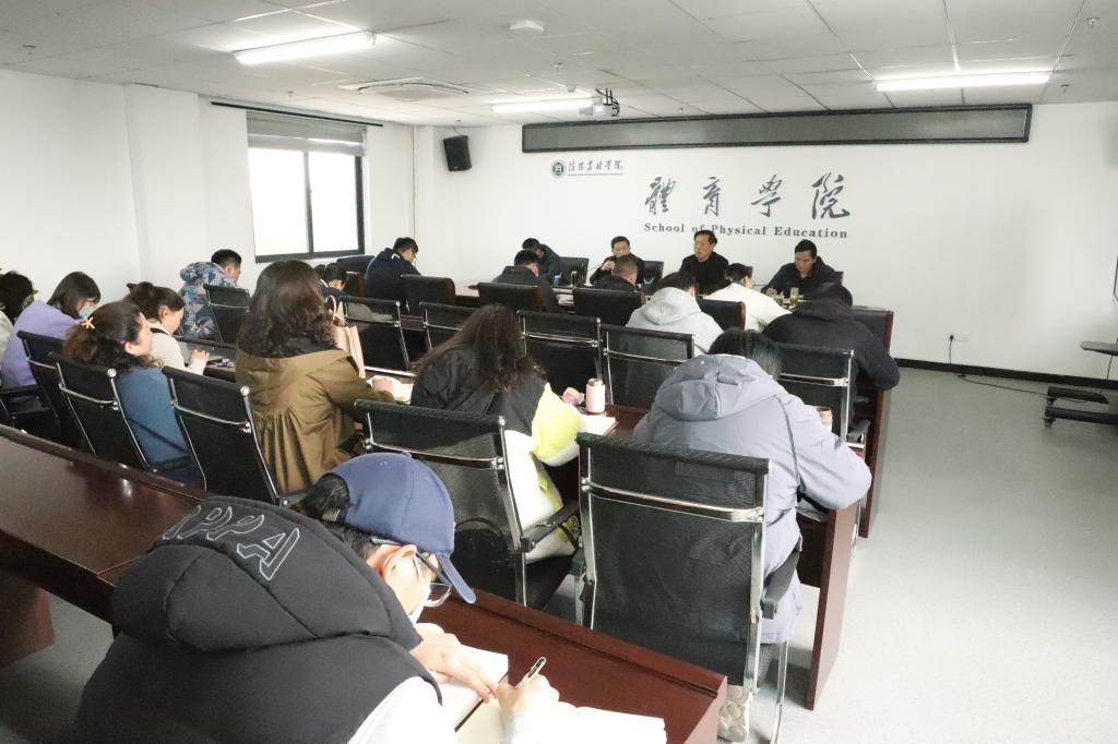 为深入贯彻习近平总书记关于“大思政课”建设的重要指示精神,全面落实《关于新时代加强和改进思想政治工作的意见》,3月1日下午,体育学院在院会议室召开开学思政第一课系列活动,组织全体教职工集中学习党的十九届六中全会精神。