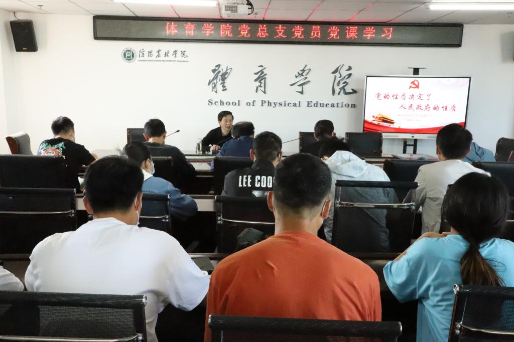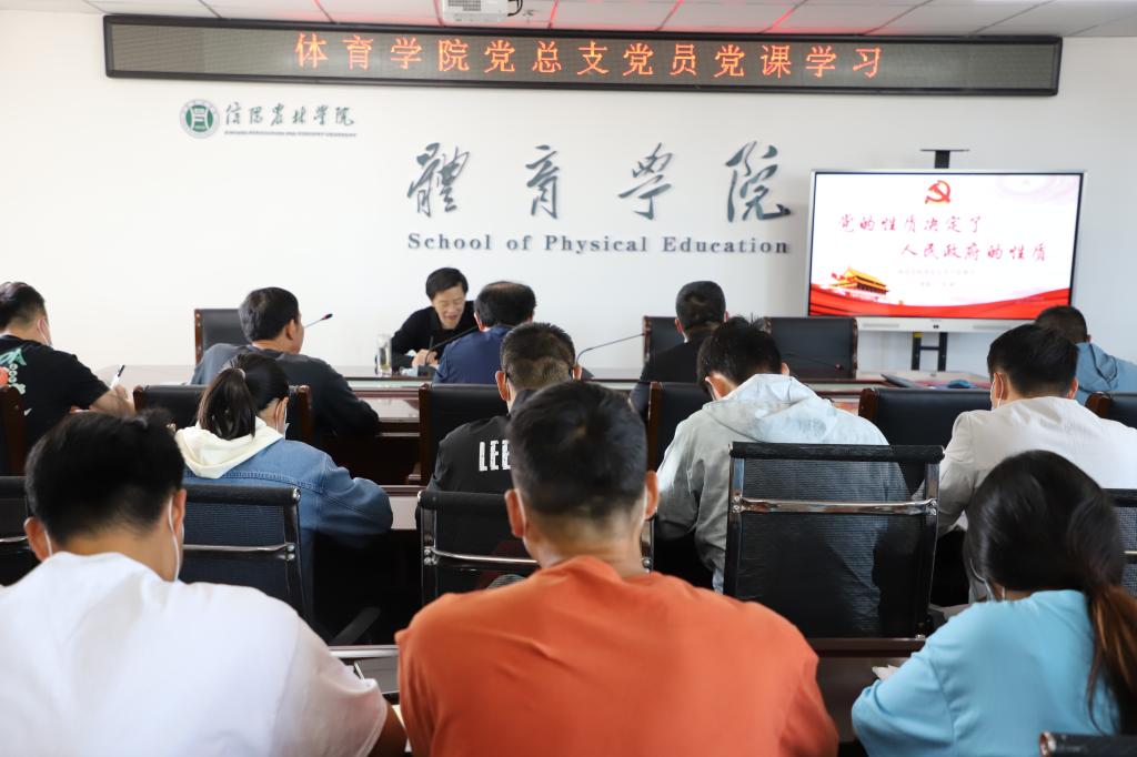 为号召全体党员认真学党史、听党话、跟党走,从党史中汲取丰富的精神营养,5月2日下午,体育学院党总支开展“书记讲党课”系列活动,党总支书记李耕做了题为“党的性质决定人民政府的性质”的报告,学院全体教师党员参加。