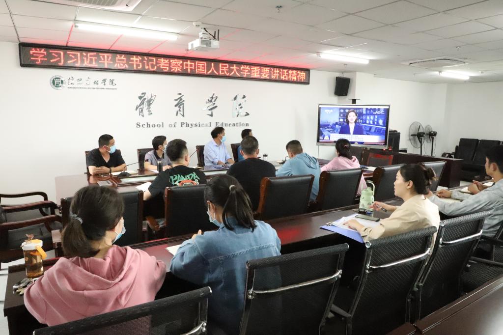 会上,大家集体收看了《坚持党的领导传承红色基因扎根中国大地 走出一条建设中国特色世界一流大学新路》的讲话视频,李俊院长指出,习近平总书记的重要讲话是对我们高校学生工作者的要求和鞭策,体育承载着为党育人、为国育才的重要任务,要在以体铸魂上下功夫,加强学生理想信念教育。随后与会教师进行了交流讨论,畅谈学习体会。