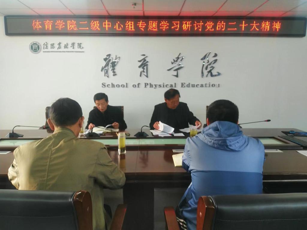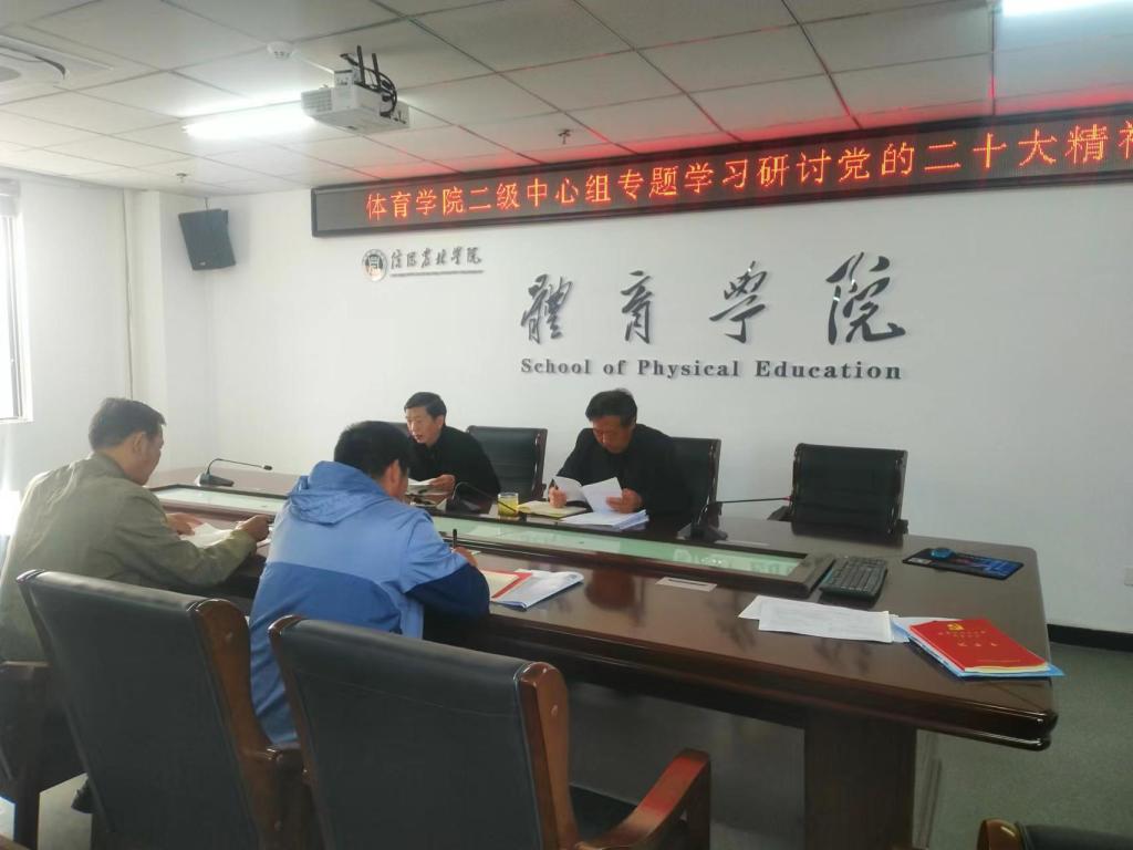 11月3日,体育学院党总支召开二级中心组学习会议,专题学习党的二十大精神,会议由院党总支书记李耕主持,中心组成员参加。