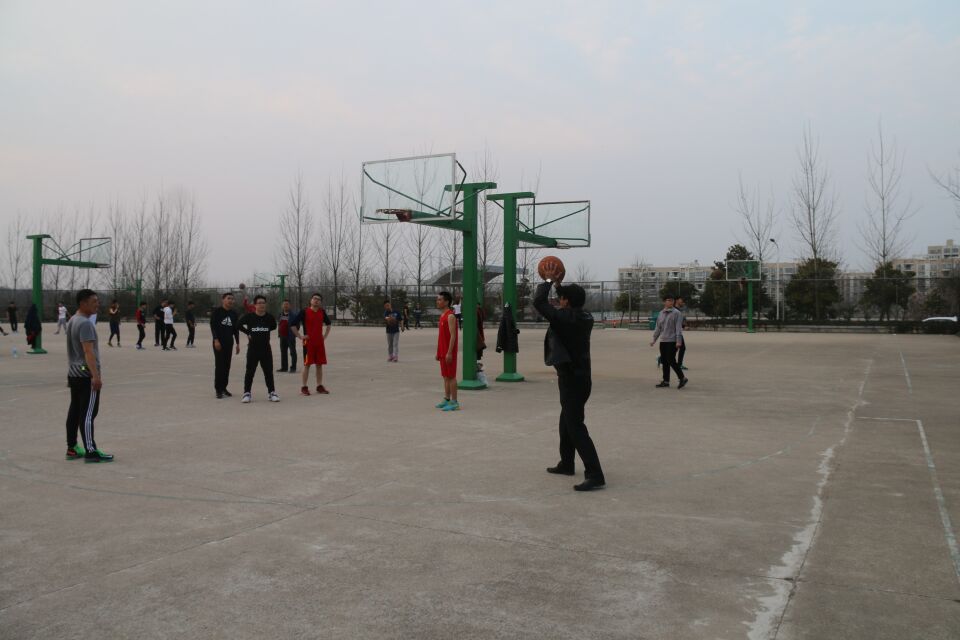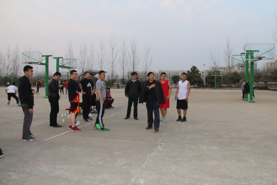3月9日下午四点半,由beat365在线平台官网教工篮球协会组织,体育教学部协助的中青年教职工男子篮球友谊赛在校篮球场鸣哨开赛。中年队由校教师篮球协会成员组成,青年教师队由近两年部分新进教师组成。党委副书记刘光生、工会副主席黄遵东作为中年队队员参加了比赛。副校长赵一鹏、王庆兵到现场观看并指导青年队比赛。