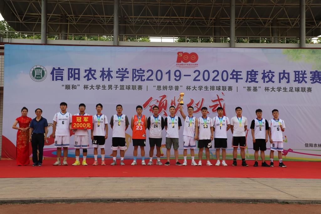6月8日下午,由学校体育运动委员会主办,体育学院、学生处、校团委协办的beat365在线平台官网2019-2020年度校内联赛暨“顺和”杯大学生男子篮球联赛、“思辨华普”杯大学生排球联赛、“茶基”杯大学生足球联赛颁奖仪式在田径场隆重举行。校党委副书记黄松、副校长赵一鹏、黄遵东、王万玲、学生处处长简频捷、校团委副书记祝伟洋、农学院党总支书记李传宝、信息工程学院党总支副书记朱猛及体育学院负责人参加了颁奖仪式,仪式由体育学院院长李俊主持。
