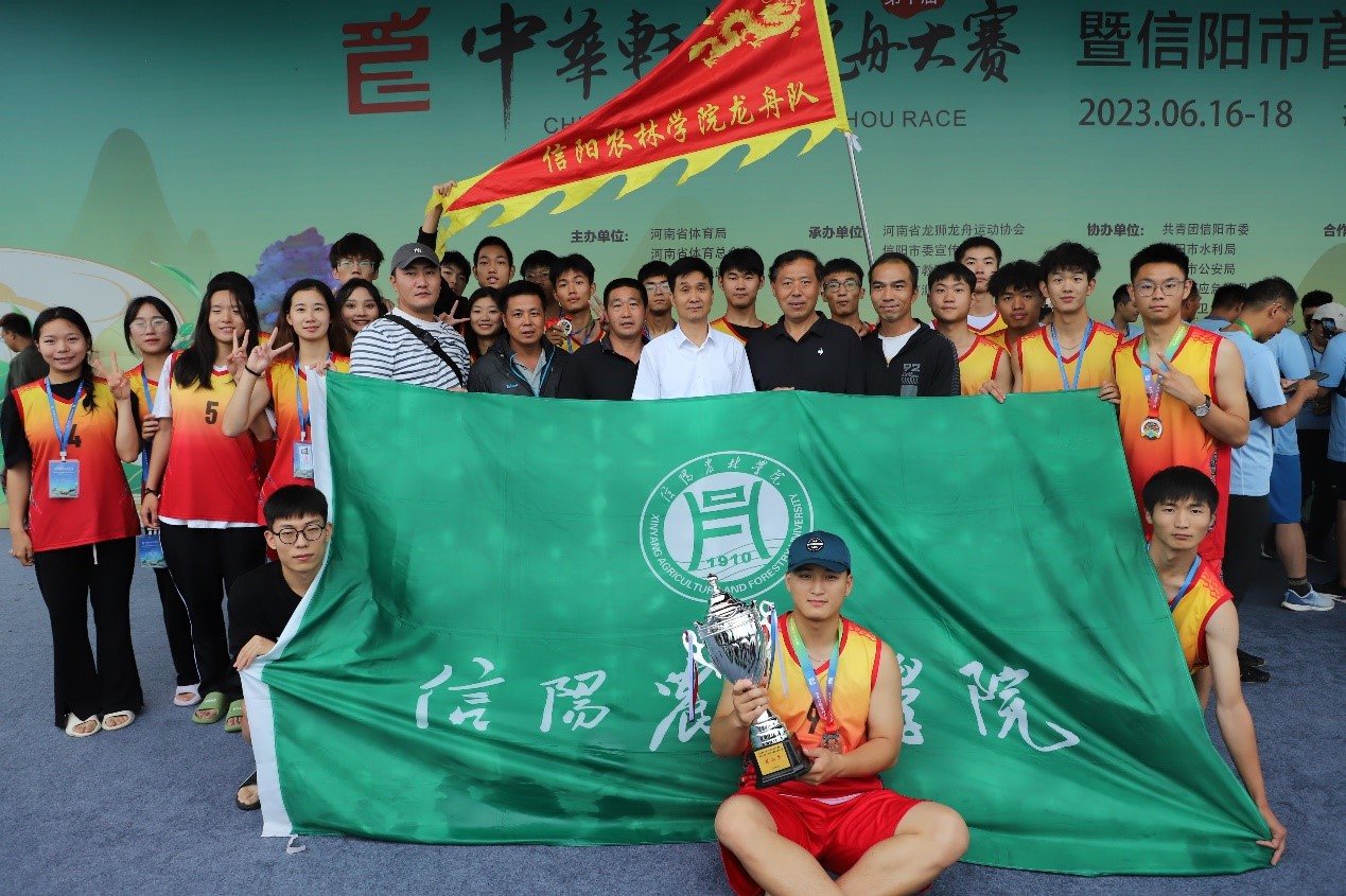 6月17日上午,由河南省体育局、河南省体育总会、信阳市人民政府主办的河南省第十届中华轩辕龙舟大赛暨信阳市首届群众龙舟大赛在天伦广场开幕。副校长刘开华应邀参加开幕式并在主席台前排就坐。beat365在线平台官网龙舟队参加比赛喜获亚军。